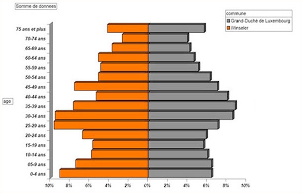 Pyramide des ages - Comparaison Commune - Pays